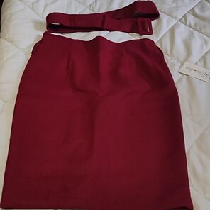 Вполне приличная юбка, толстая ткань, подкладка, съемный широкий пояс. При талии 80, бедрах 102 размер ХХL сидит чуть свободнее, чем хотелось бы, но ткань достаточно плотная, чтоб со стороны это было совсем не заметно.