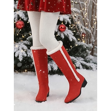 Женские красные сапоги из искусственной замши – элегантные зимние сапоги с подкладкой из шерпы для рождественских нарядов, прогулок в холодную погоду и праздничных встреч