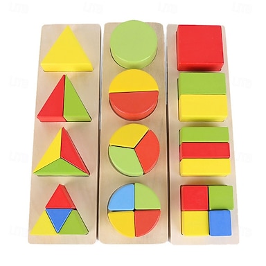 Деревянная головоломка с дробными и геометрическими фигурами - образовательная игрушка Montessori для малышей - доска для сортировки цветов и форм Рождественский подарок
