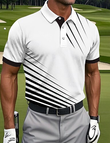 Муж. Полоски Спортивные рубашки поло Рубашка для гольфа С короткими рукавами Футболки поло Рубашки с воротником На каждый день Спортивная одежда Одежда для отпуска Пуговицы 3D печать