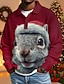 Новогодняя тематика Муж. Животное Белка Рубашки-поло из вафельной ткани Длинный рукав Футболки поло Рубашки с воротником На каждый день На каждый день Фестивальный наряд Пуговицы Весна Осень Зима