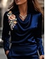 Жен. Рубашка Цветочный принт Элегантный стиль Стиль На каждый день Длинный рукав Вырез-хомут Обычные топы Офис Повседневные Праздники С принтом Драпировка Темно синий Весна Осень