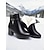 Женские черные ботильоны с шерстяной подкладкой – теплые зимние сапоги из искусственной кожи на каблуке для холодной погоды, офисных и повседневных образов