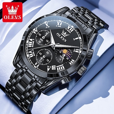 Мужские часы Olevs 2871 с оригинальным календарем и фазами Луны, водонепроницаемые, 30 м, кварцевые часы из нержавеющей стали