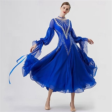 Бальные танцы Платье Стразы Жен. Выступление Учебный Длинный рукав Завышенная талия Шифон Чинлон Тюль