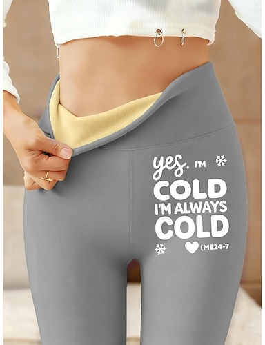 Жен. леггинсы на флисовой подкладке Флисовые штаны Леггинсы Классический На каждый день Полная длина Завышенная Буквы Сохраняет тепло удобный Удобный Эластичная