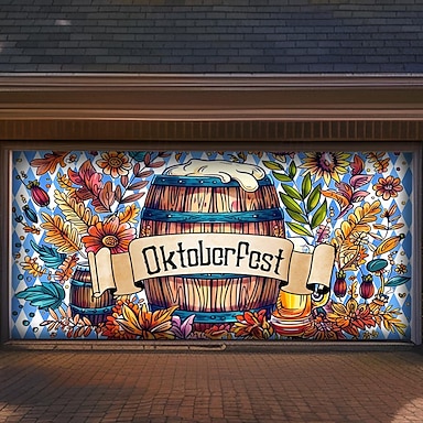 Немецкий Октоберфест 2025 накрытие двери гаража с баннером кренделем винтажным пивом большой задний план для праздничного outdoor декора дома на двери гаража.