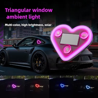 Подсветка салона автомобиля на солнечных батареях, неоновая светодиодная подсветка в форме сердца, декоративное освещение салона, идеально подходящее для индивидуализации автомобиля.