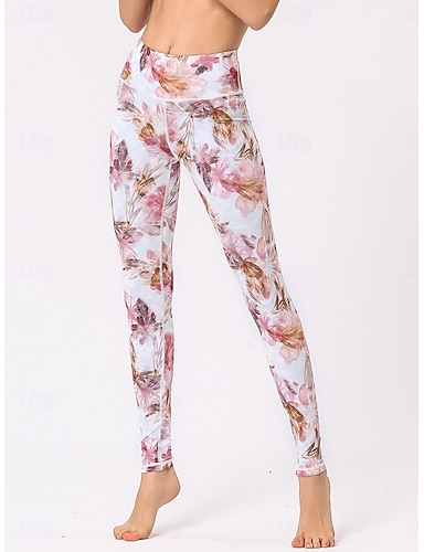 Жен. Штаны для пилатеса Штаны для йоги Подъемный крюк Завышенная Тренировка в тренажерном зале Бег Фитнес Леггинсы Нижняя часть Цветочные Желтый Розовый Синий Виды спорта Спортивная одежда