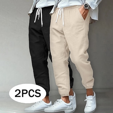 Муж. Льняные брюки Штаны Летние штаны Пляжные штаны Повседневные брюки Карман Эластичная талия Мульти-упаковка Сплошной цвет Комфорт Дышащий Полная длина на открытом воздухе Дом Повседневные
