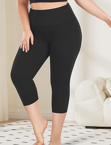 Жен. леггинсы для пилатеса Леггинсы-капри спортивные штаны Легкость Пилатес Тренажерный зал Бег Леггинсы-капри Сплошной цвет Темно-серый Черный Военно-зеленный Большие размеры Виды спорта