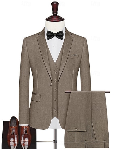 Мужской Свадьба Повседневные Деловые костюмы Лацкан с тупым углом Хаки Формальная Однотонный Приталенный крой Набор из 3 предметов Однобортный с 1 пуговицей