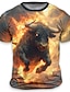 Муж. Животное Корова Футболка С короткими рукавами Футболка 3D печать Вырез под горло Рубашка преувеличены Оригинальный рисунок Для вечеринок Праздники Черный 1 Черный 3 Черный 2 Лето Весна Одежда S
