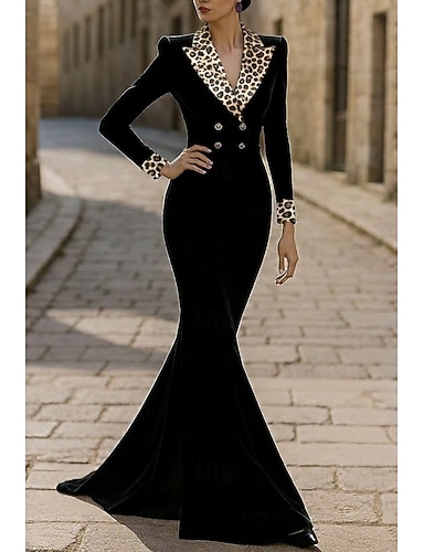 Платье-смокинг Русалка Официальные Бархат Элегантный стиль Длинный рукав В пол Лацкан Двубортный крой