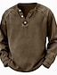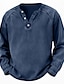 Муж. Вафельная рубашка Длинный рукав Хенли Весна Осень Зима Элегантный стиль Теплый Активный Пуговицы Школа Учебный на открытом воздухе Черный Белый Темно синий Футболка для мужчин