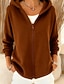 Жен. Толстовки на молнии Полотняное плетение Элегантный стиль Теплый Мода Длинный рукав Капюшон Обычные топы Дом Офис Для улицы Пэчворк Молния Темно-коричневый Цвет бордо Темно-синий Черный Розовый