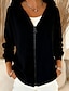 Жен. Толстовки на молнии Толстовки с застежкой-молнией Полотняное плетение Элегантный стиль Теплый Мода Длинный рукав Капюшон Обычные топы Дом Офис Для улицы Кулиска Пэчворк Молния