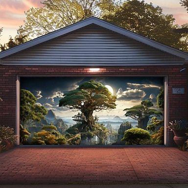 Пейзаж Лес Дверные Декорации Накрытие Гаражной Двери Уличный Баннер Большой Фон для Праздника Уличной Гаражной Двери Домашние Стенные Декорации