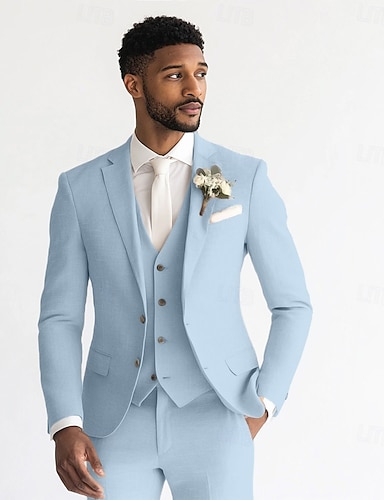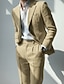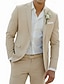 Мужской Хлопок Лен Костюм Формальная Небесно-голубой Бежевый Сплошной цвет Стандартная посадка Длиные Неэластичная