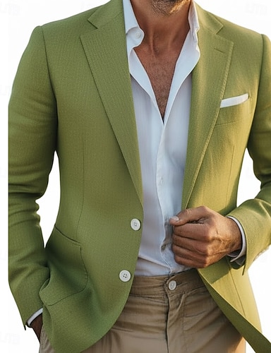 Муж. Пиджак Закрытие воротника Винтаж Для вечеринки Классика Однотонный Blazer Черный Бордовый Военно-зеленный Узкий крой Однобортный с 1 пуговицей