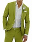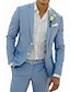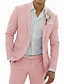 Мужской Льняные костюмы Свадьба на пляже Повседневные Розовый Небесно-голубой Весна лето Костюм Лацкан с тупым углом Мода Повседневные Однотонный Узкий крой Набор из 2 предметов Однобортный с 2
