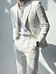 Мужской Льняные костюмы Повседневные Бизнес Белый Розовый Лето Костюм Лацкан с тупым углом Мода На каждый день Однотонный Узкий крой Набор из 2 предметов Однобортный с 1 пуговицей