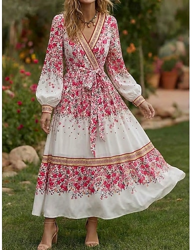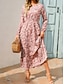 Жен. Платье средней длины Платье в стиле бохо Повседневное платье Элегантный стиль Винтаж Повседневные на открытом воздухе Отпуск Стандартный Цветочный принт Длинный рукав V-образный вырез Розовый