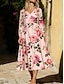 Жен. Платье средней длины Платье в стиле 50-х годов Стиль На каждый день Отпуск Для вечеринок Повседневные Стандартный Цветочный принт С короткими рукавами V-образный вырез Розовый Лето