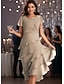 Жен. Платье средней длины Шифоновые платья Платье A-силуэта Элегантный стиль Свадебный гость Коктейльная вечеринка Шнуровка Пайетки Стандартный Сплошной цвет Рукав 3/4 Вырез под горло Кофейный