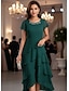 Жен. Платье средней длины Платье с рюшами Элегантный стиль Повседневные Отпуск Свадебный гость Кружева Многослойный Стандартный Цветочный принт Без рукавов С короткими рукавами U-образный вырез