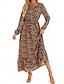 Жен. Платье средней длины Цветочное платье Мода Классика Современное на открытом воздухе Отпуск На выход Стандартный Леопард Без рукавов Вырез под горло Коричневый Лето