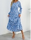 Жен. Платье средней длины Платье на выпускной Цветочное платье Мода Современное на открытом воздухе Отпуск Праздники Стандартный Цветы Длинный рукав Квадратный вырез Синий Белый Лиловый Золотой Лето