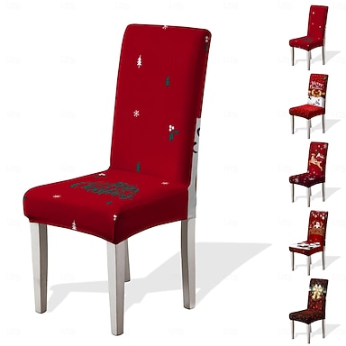 Рождественский чехол для обеденного стула, чехол из полиэстера с геометрическим принтом, эластичный нескользящий чехол для стула для дома или вечеринки