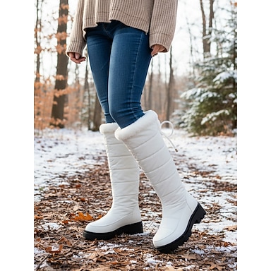 женские белые водонепроницаемые зимние сапоги до колена – теплые утепленные зимние сапоги для холодной погоды, активного отдыха и повседневного стиля