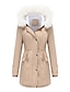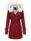 Жен. Зимняя куртка Парка Сохраняет тепло Флисовая подкладка Меховая оторочка Активный Повседневные Классический Удобный Сплошной цвет Ночь На каждый день Прогулки Капюшон Стандартный Длинный рукав