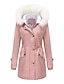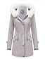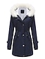 Жен. Кожаные куртки Зимнее пальто Пальто Сохраняет тепло Удобный Карман Пуговицы Меховой воротник Мода На каждый день Сплошной цвет Отпуск Для улицы Повседневные На каждый день Длинная Отложной