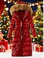 Жен. Зимнее пальто Пуховик Куртка с капюшоном Сохраняет тепло Удобный Молния Карман Меховой воротник На каждый день Полотняное плетение на открытом воздухе Отпуск Для улицы На каждый день Длинная