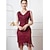 Бурные 20-е 1920-е годы До колена Платье для флаперов Без рукавов Великий Гэтсби Девушка-обманщик Пайетки Бахрома V-образный вырез Маскарадный костюм Жен. Рождество Карнавал