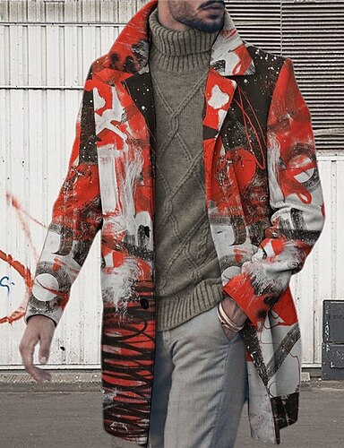 Муж. Графические принты Граффити Зимнее пальто Пальто Сохраняет тепло Удобный Дышащий Мода Уличный стиль Деловые Офис Носить на работу На выход Карман С принтом Наступила зима Отложной Длинный рукав