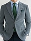 Муж. Пиджак Школа Офис Бизнес Элегантный стиль Мода Весна Осень Смесь шерсти Сплошной цвет Без железа Однобортный с 2 пуговицами Блейзер Синий Серый