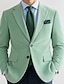 Муж. Пиджак Спортивная куртка Воротник с вырезом Мода На каждый день Однотонный Небесно-голубой Полупрозрачный зеленый Стандартная посадка Однобортный с двумя пуговицами