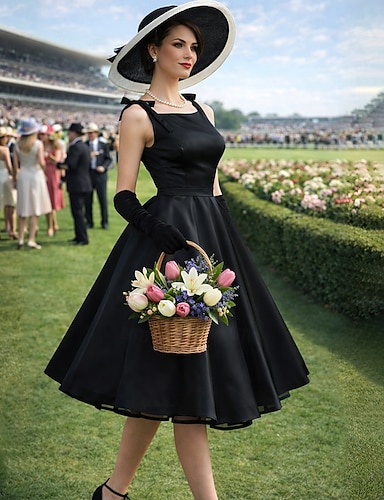 А-силуэт Ниже колена Выпускные платья Винтаж 1950-е года Без рукавов Квадратный вырез Свадебный гость градация Сатин с Пояс / лента Бант(ы) Чистый цвет