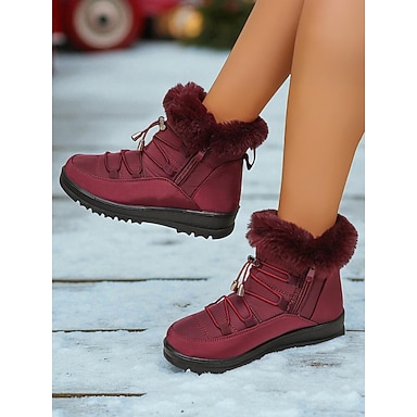 Женские зимние ботинки бордового цвета с подкладкой из искусственного меха и боковой молнией, теплые водонепроницаемые ботинки для ношения на открытом воздухе в холодную погоду
