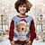 Новогодняя тематика Мальчики 3D Графика Пряничные человечки Футболка Длинный рукав Весна Осень Мода Классический Дети 4-12 лет Вырез под горло на открытом воздухе Повседневные Стандартный