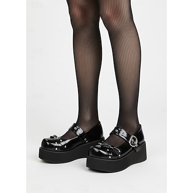женские черно-белые туфли Мэри Джейн на блочном каблуке с зубчатым краем – туфли на платформе в стиле Лолита из лакированной искусственной кожи с пряжками в виде сердечек для винтажных или косплей-образов
