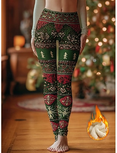 Жен. Леггинсы Отпуск Винтаж Этнический стиль Полная длина НормальнаяPantsНовогодняя тематика Рождество Эластичная Темно-серый Розовый Зеленый Лето Весна Зима Приталенный крой