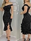 Жен. Платье средней длины Черное платье Платье-футляр Элегантный стиль Мода Современное Офис Повседневные Праздники Стандартный Полотняное плетение Без рукавов С открытыми плечами