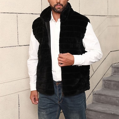 Муж. Жилет из искусственной замши Жилет на открытом воздухе Повседневные Мода На каждый день Осень Зима Карман Искусственный мех Удобный Полотняное плетение Молния Воротник-стойка Стандартный Черный