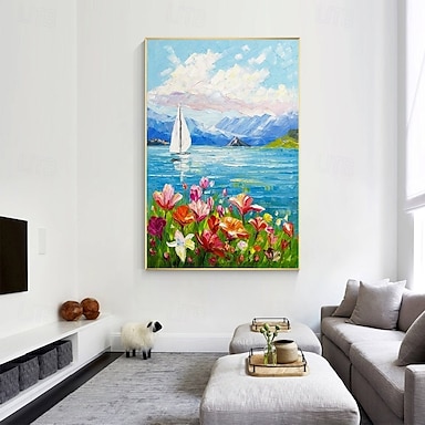 Ручная работа, океан, нож, цветок, картина маслом, декор для пляжа, ручная работа, отпуск, пейзаж, волна, горы, морской пейзаж, красочная картина маслом, украшение для дома, памятный подарок