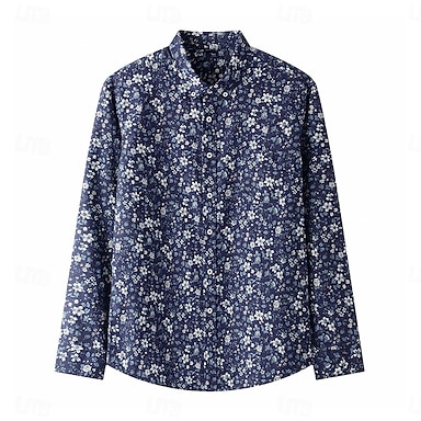 Муж. Цветочный принт Лоза Рубашка Оксфордская рубашка Длинный рукав Винтаж Гавайский Художественный Школа Выступление Свадьба Лето Весна Осень Воротник с уголками на пуговицах (button-down)